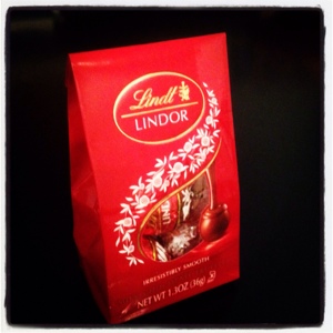 Last, my favorite treat. Lindt Lindor Truffles (although my favorite flavor is up for debate). These are from Valentine's Day, but I've been avoiding treats, so they remain untouched. That's true gratification.